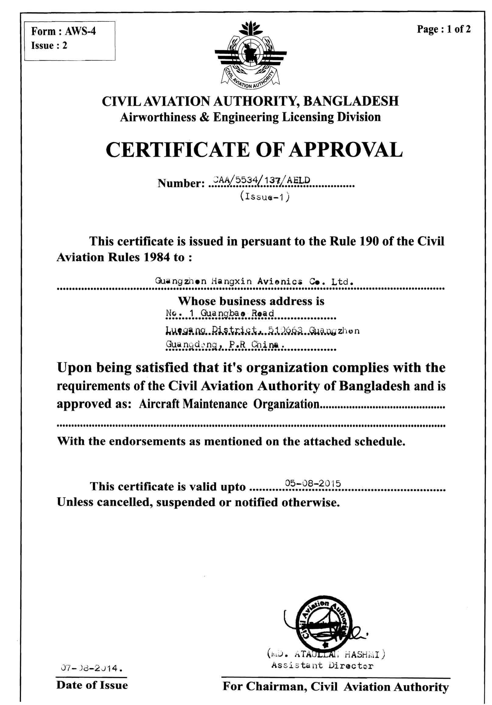 FAA Certificate-Shanghai ...